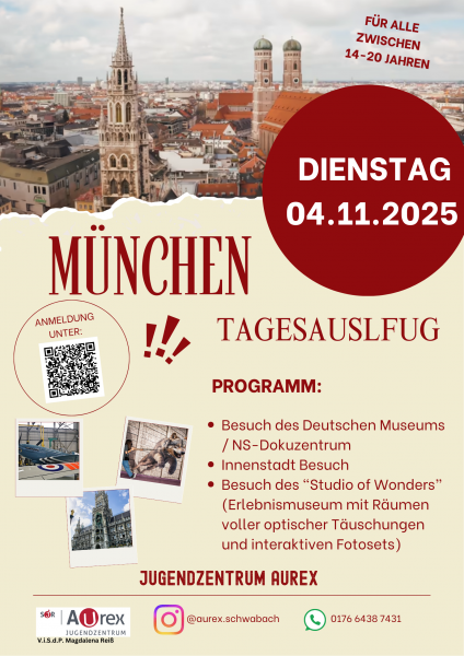 Die Kosten von 12 € beinhalten Zugfahrt, ÖPNV in München & Museumsbesuch.